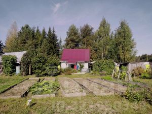 Земля предназначена для личного подсобного хозяйства. Высокий забор из оцинкованного профлиста и хвойные деревья защищают участок от посторонних глаз.