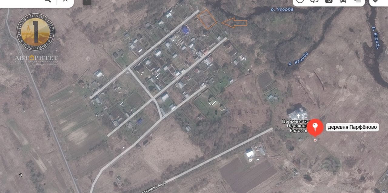 Уникальное расположение, по границе участка протекает река Ягорба, имеется свой выход к речке, можно купаться и ловить рыбу. С участка виднеется красивый монастырь из красного кирпича.