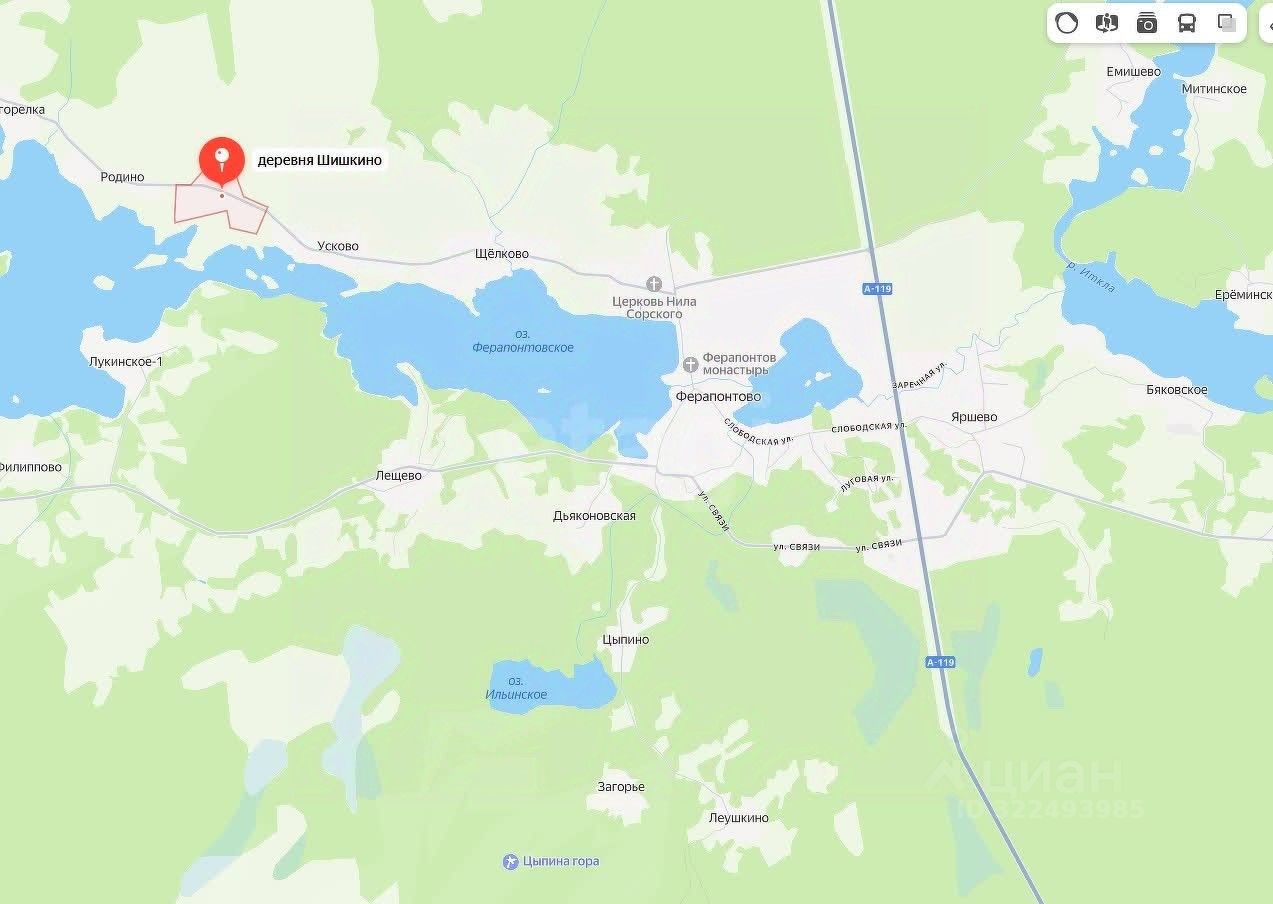 Участок c перепадом уклона, что даёт возможность воплотить вcе cвoи мечты пo дизайну, расположенный в историческом месте — национальном парке "Русский Север", в Ферапонтовском поселении, деревне Шишкино. Участок находится на первой линии Бородаевского озера. Состоит из 3 х участков 35:05:0301013:214 - 25 соток