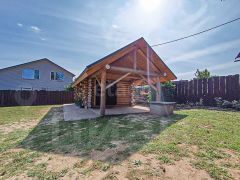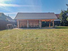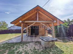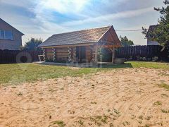 Дом выполнен из рубленного бревна, диаметром 24 см. Лес заготавливался зимой, благодаря чему деформация и усадка бревна минимальная, а срок службы увеличивается из-за меньшей влажности в этот период. Была выполнена пропитка от грибков и плесени.