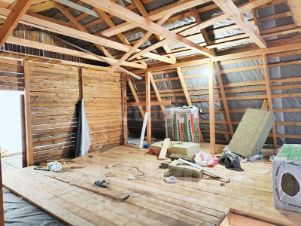 Дом без внутренней отделки. Фундамент блочный, стены - 1 этаж сруб бревенчатый, мансарда - каркас, цокольный этаж (высота 1,8 м).