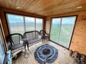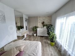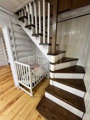 Дом построен из качественного бревна, с мансардным этажом, обшитым сайдингом, и крышей из металлочерепицы. Фундамент выполнен из бетонной ленты, что гарантирует надежность и долговечность. Внутри вас ждет просторный холл, светлая гостиная площадью 30 кв.м. с панорамным остеклением, уютная кухня, две спальни и два санузла. Из кухни есть удобный выход на участок, что делает его идеальным для летних посиделок на свежем воздухе. На втором этаже расположены три дополнительные комнаты, которые можно использовать по своему усмотрению.
