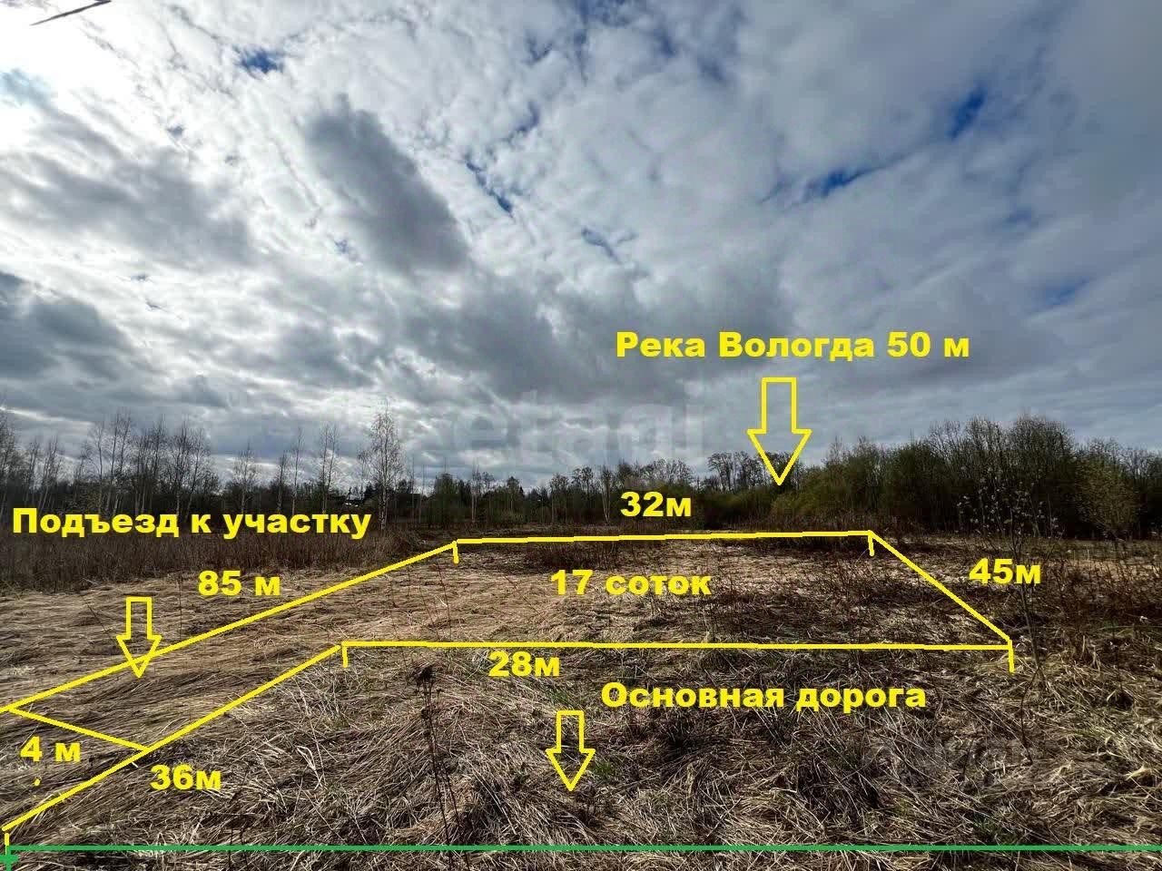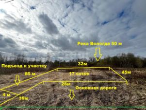 Участок имеет ровную форму и находится всего в 100 метрах от реки Вологда. Рядом раскинулся сосновый бор, создающий уютную атмосферу для прогулок и отдыха. Линия для подключения света проходит вдоль участка, что значительно упрощает процесс строительства частного дома.