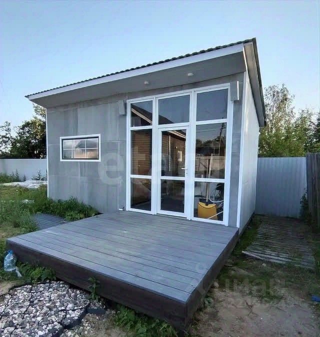 Внутри: площадь 78 кв.м, 1 этаж (48) + 2 этаж (30) , так как форм-фактор включает "второй свет". На входе большой тамбур, слева вход в ванную комнату, прямо основное помещение "кухня-гостиная", установлена лестница на металл каркасе (не скрипит, выглядит не массивно, ступени из плотной древесины в цвет пола второго этажа), на полу дорогой коммерческий линолеум Tarkett, во всех помещениях теплый пол, выполнено водоснабжение(колодец) и водоотведение(септик), отопление конвекторами (по линии участка проходит газ). На втором этаже 2 изолированных спальных места по 7,5 кв.м каждое + балкон 15 кв.м , в конек можно установить подвесное кресло-качель.Установлена сантехника: водонагреватель,унитаз,душевая кабина, умывальник, зеркало, фильтры, насосная станция. Выполнена электрика по зданию + разводка по участку (включая выход на ворота).Есть временное крыльцо, по желанию можете сделать открытую или закрытую террасу.