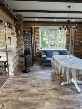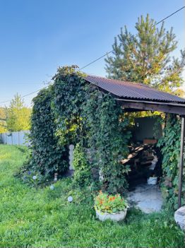 На территории есть беседка из цилиндрованного бревна с навесом для мангала.