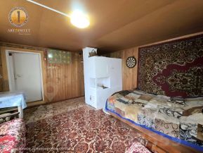 Внутри отделан вагонкой, снаружи — сайдинг. Крыша железная.