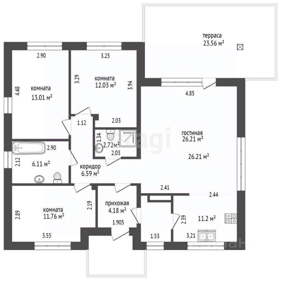 По планировке в доме 3 полноценных комнаты, кухня- гостиная, санузел, тех.помещение! Подойдет для семьи с детьми!