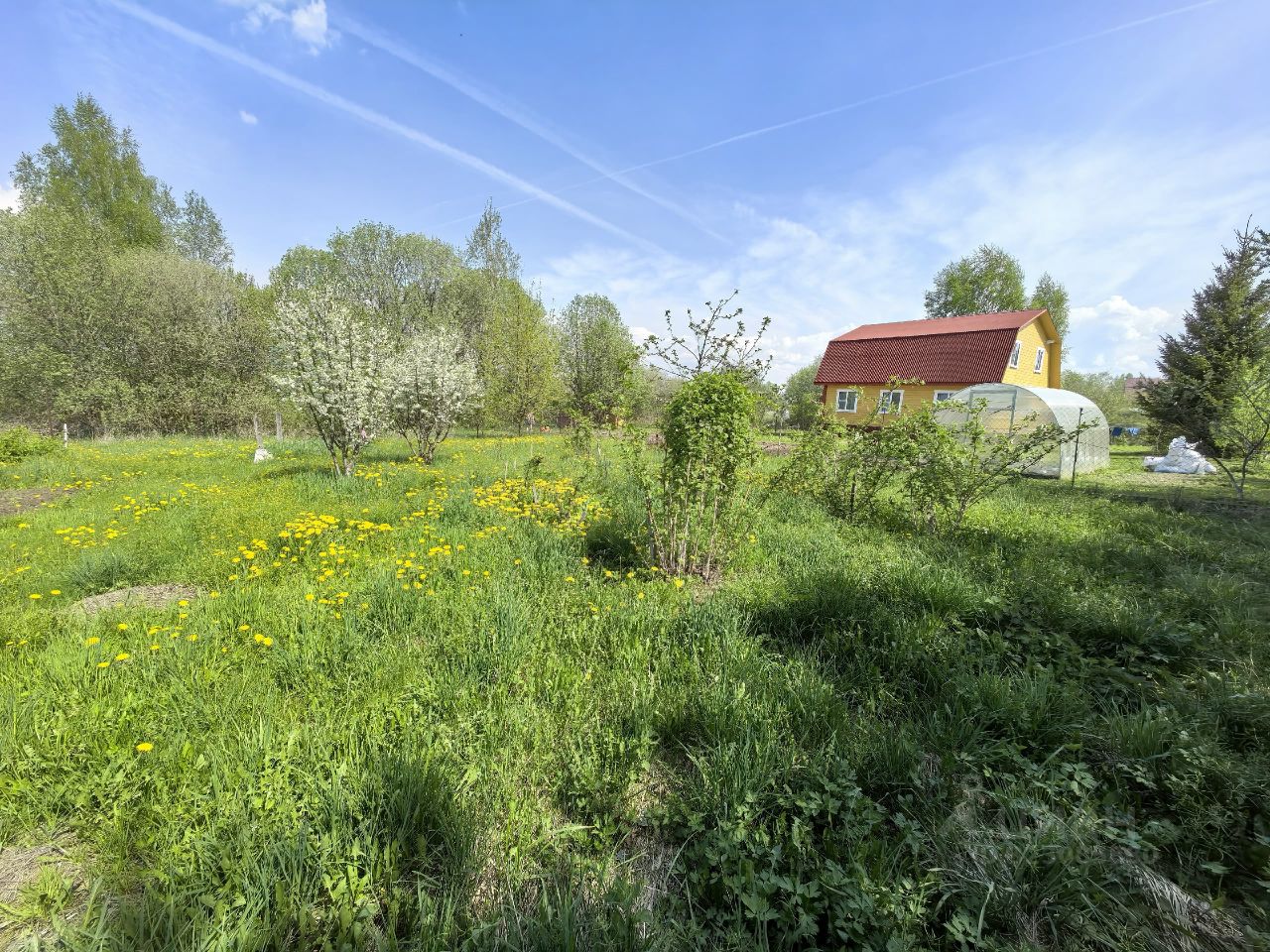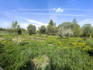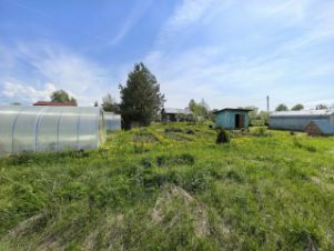 Участок разработан. Две теплицы. Клубника, чеснок.