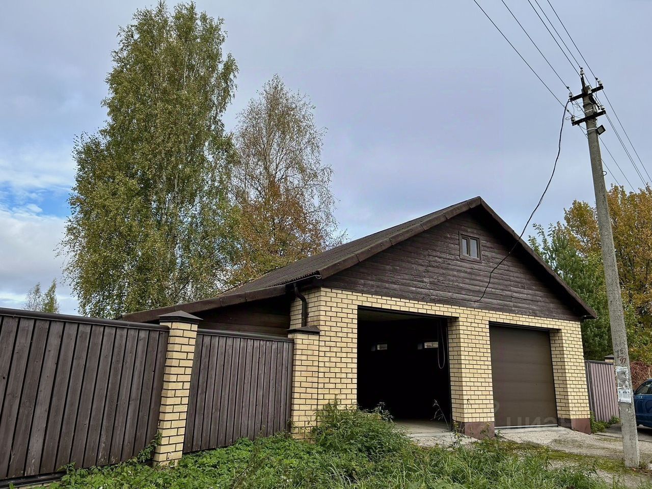 Гараж. Стены силикатный кирпич, утеплитель керамзит, лицевой керамический кирпич Слоновая Кость .Пол бетонный, стены штукатурка с покраской. Стеллажи , кессон . Подьемные ворота с пультом электро. Холодный чердак. Кровля Ондулин.
