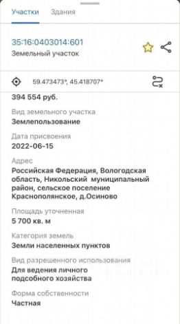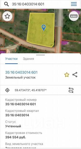 Кад номер: 35:16:0403014:601