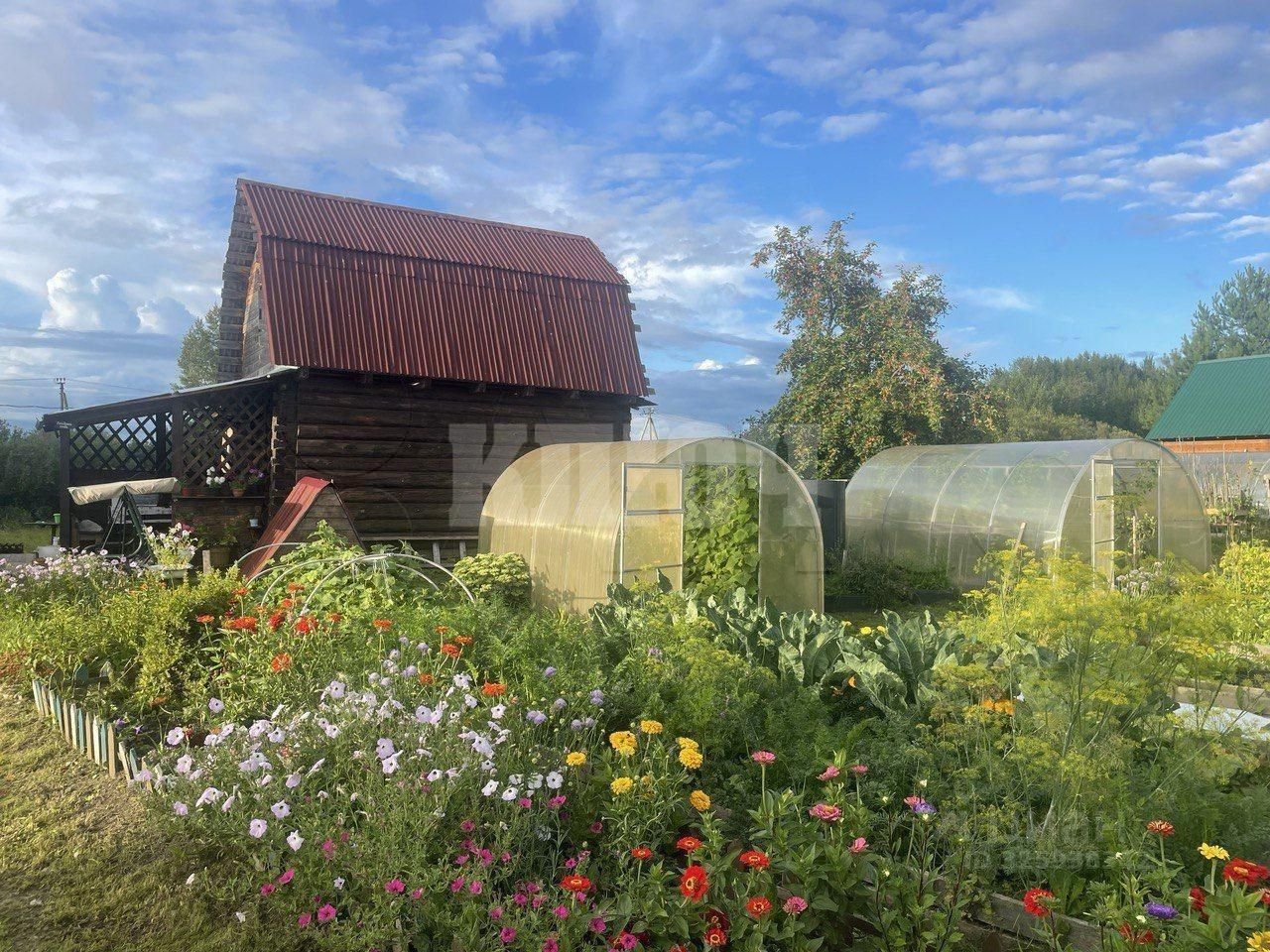 - На участке 2 теплицы из поликарбоната, плодово-ягодные насаждения, участок ухоженный, со стороны дороги обнесен деревянным забором.