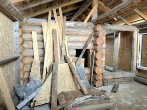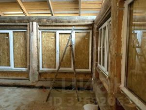 Сруб из бревна 15 м2 (35), два каркасных помещения по бокам, одно застеклено (установлено 4 трехстворчатых стеклопакета).