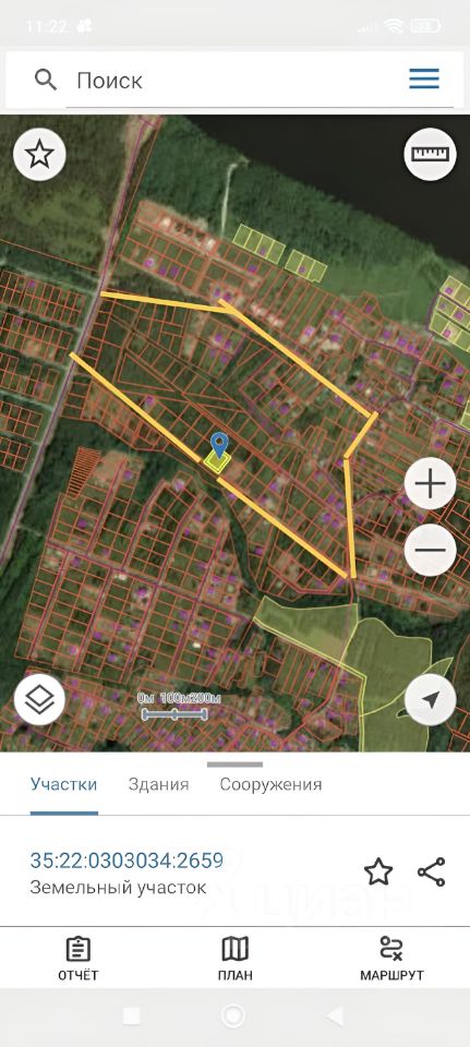 Продам земельный участок в д. Циково, ул. Лучистая 18 соток, ИЖС, в собственности. Размеры 40*45м. К.н. 35:22:0303034:2659
