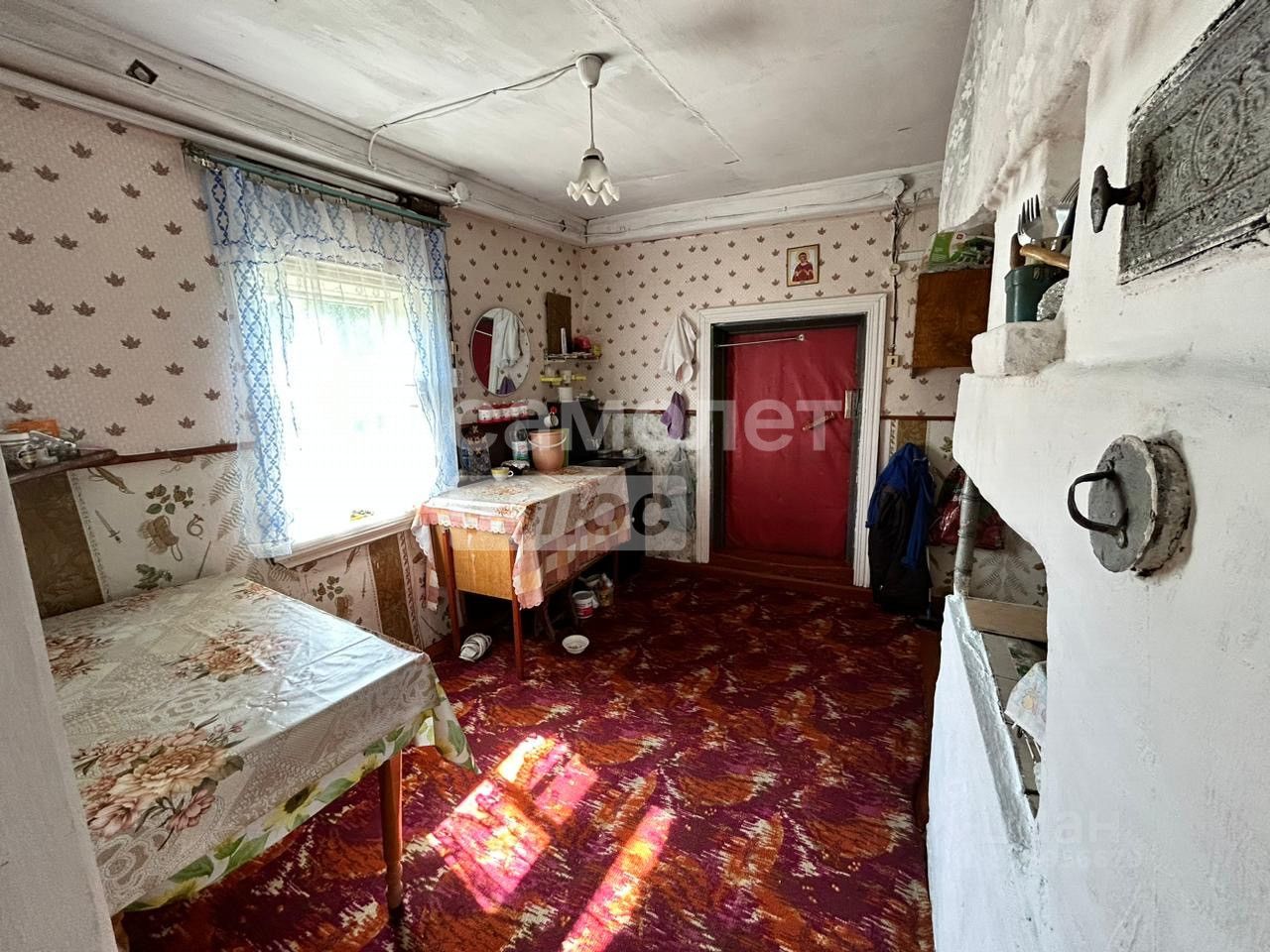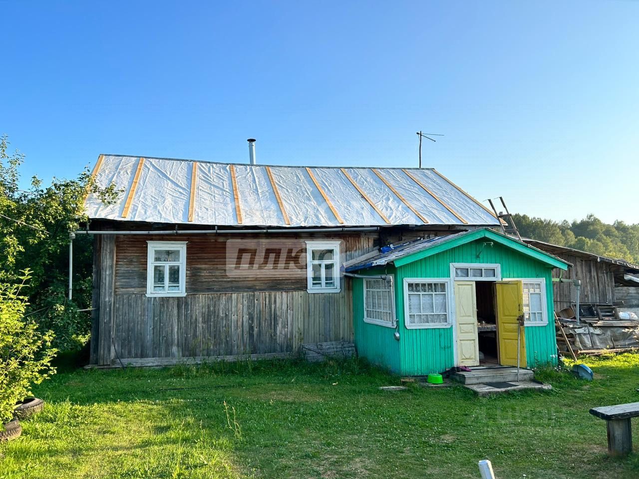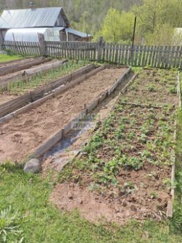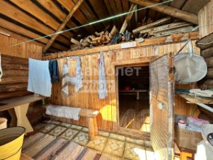 На участке 1-этажный бревенчатый дом площадью 38,2 м2, баня, дровенник. Оборудованный в доме туалет. Водовод проведен с реки.