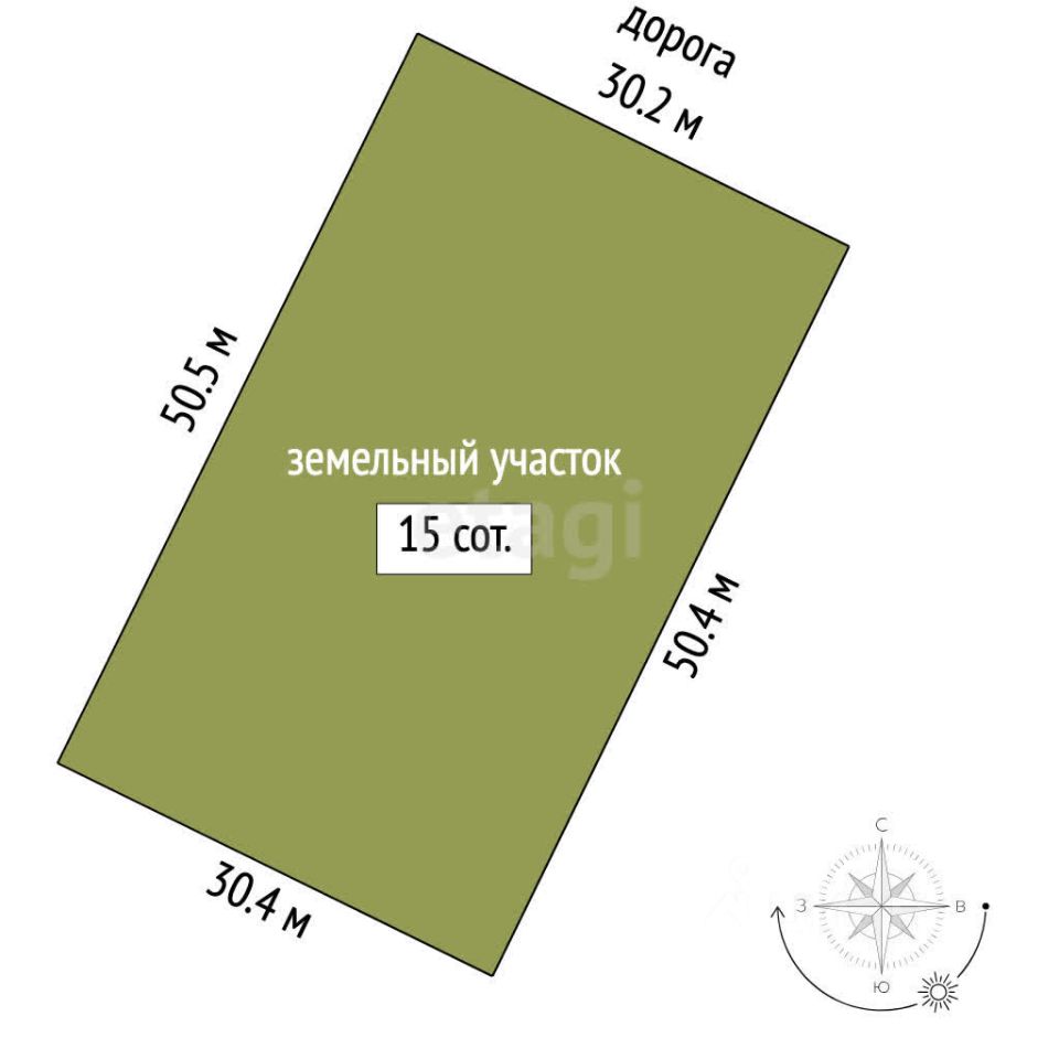 Площадь: 15 соток (30х50 м)