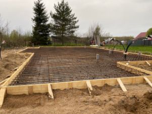 - монолитная железобетонная плита 300мм на песчаной подушке