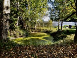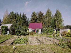 Земля предназначена для личного подсобного хозяйства. Высокий забор из оцинкованного профлиста и хвойные деревья защищают участок от посторонних глаз.