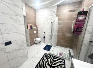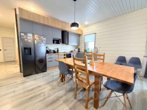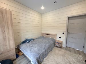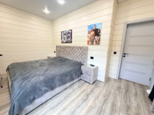 В доме расположена большая кухня-гостиная 40 кв.м, 4 спальных комнаты,зона прихожей, два санузла, бойлерная, гардеробная.Есть холодный коридор. Большая открытая терраса 4*4 + 5*1,5 м² с выходом во двор. Установлен кондиционер.