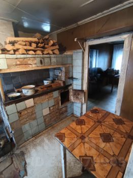 Дом 1957 года постройки, бревенчатые стены оштукатурены, состоит из прихожей, большого зала, двух маленьких комнат и кухни. Во всех комнатах включая прихожую есть окна, зал с тремя окнами. на всех окнах стеклопакеты. В кухне русская печь, раковина, чертырехконфорочная плита, газ баллонный. Туалет в доме, также есть "хоолодный" туалет в сенях. Из сеней идёт хорошая крепкая лестница на вместительный чердак. На крыльце расположена кладовая со шкафом. Из сеней сделан выход на задний двор, где расположено помещение для хрюшек, над ним большой сеновал. На заднем дворе оборудовано место для хранения инструментов, верстак, шкаф. На задний двор также можно попасть через ворота позади дома. На участке расположены: баня (требует ремонта, давно не использовалась, вода подведена), гараж (слева от дома, выезд на улицу), сарайчик с кроватью для летнего сна. В доме долго никто не проживал, ему требуется хозяин, чтобы приложить руки и привести все в порядок. От г.Санкт-Петербурга 4 часа на машине, от Киришей 2,5 часа на машине. Отличное место для отдыха на природе!
