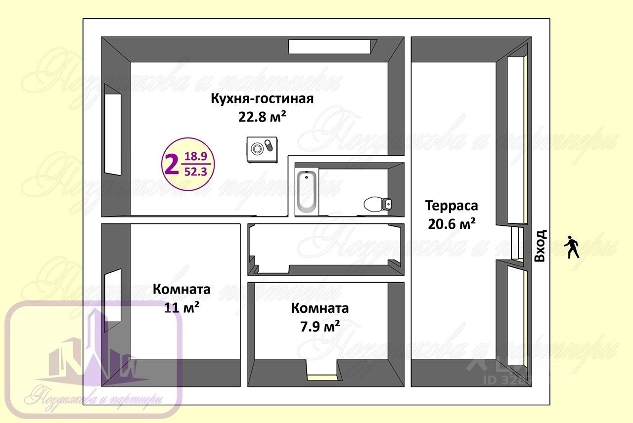 Две спальни, просторная кухня-гостиная для уютных вечеров и светлая веранда — готовое место для ваших хобби или летней комнаты.