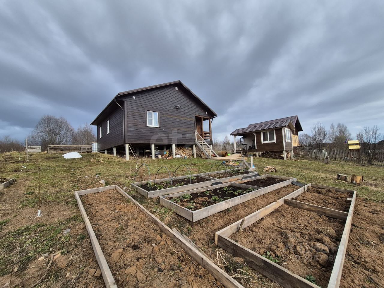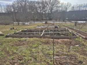 Участок начали разрабатывать смело и решительно сразу, как взяли. Высажено 24 плодовых сортовых деревьев, смородина, крыжовник, 50 кустов малины. Клубника на двух грядках-пирамидах, чеснок, все хорошо растет и дает плоды. Сторона солнечная, участок сухой.