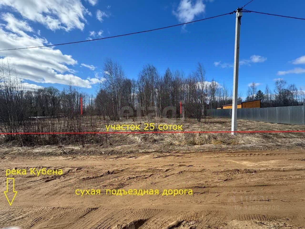 2. Отличный круглогодичный подъезд до самого участка. От Вологды до Высокого хороший асфальт, далее грейдированная широкая грунтовка 12 км, в самой деревне к участку имеется подъезд с двух сторон с дороги.