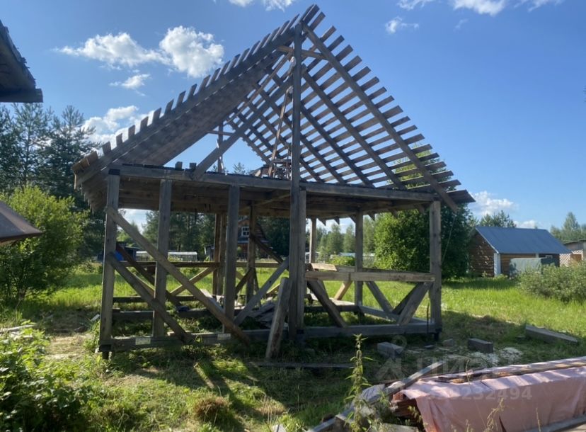 10 соток, есть сарайка и не достроенный дом.