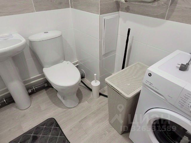 В ванной большая стиральная машина. Выход в лоджию из комнаты.