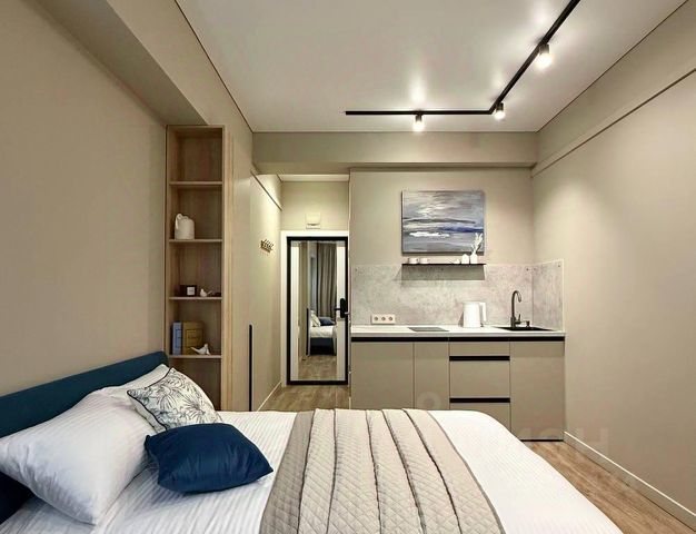 В спальной зоне вас ждет удобная двуспальная кровать с ортопедическим матрасом, чистое и свежее постельное белье, шторы блэкаут.