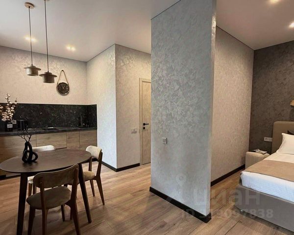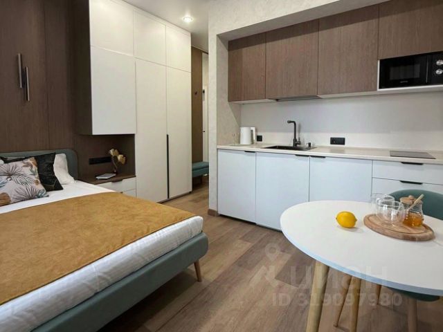 В гостиной Вас встретит удобный диван, уютная барная стойка, кухонная зона.